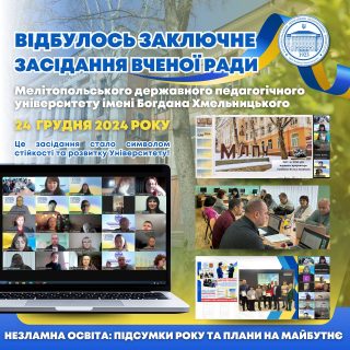 🏛️📚24 грудня 2024 року відбулося заключне засідання Вченої ради Мелітопольського державного педагогічного університету імені Богдана Хмельницького у цьому календарному році. Це була важлива подія, що підсумувала ще один рік незламної освіти – рік викликів, рішучості та нових досягнень.