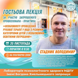 ✅👩🏼🎓 Лектор: СТАДНИК ВОЛОДИМИР – кандидат психологічних наук, доцент, старший науковий співробітник Інституту соціальної та політичної психології НАПН, член Всеукраїнської арт-терапевтичної асоціації, майстер тренер-про фітнес клубу Еврідейфітнес.