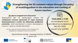 📝‼️ Проєкт спрямований на зміцнення спільних цінностей ЄС через впровадження європейської політики багатомовності під час підготовки майбутніх учителів іноземних мов, що також сприятиме впровадженню європейських мовних стандартів в український освітній простір та підвищенню якості вивчення та викладання іноземних мов з раннього віку.🏛️👩🏼🎓 В цьому навчальному році до участі у проєкті запрошуються здобувачі освіти 3 курсу груп 112/1-сг, 112/2-сг, 212-сг, 712-сг, 2113-сг факультету суспільно-гуманітарних наук та права МДПУ імені Богдана Хмельницького.