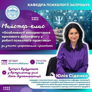 🇺🇦👩🏼💼 Запрошений практичний психолог-консультант: Юлія Сіденко-кандидат психологічних наук, завідувачка кафедри психології, глибинної корекції та реабілітації Черкаського національного університету імені Богдана Хмельницького, директорка Навчально-наукового центру ментального здоров‘я.