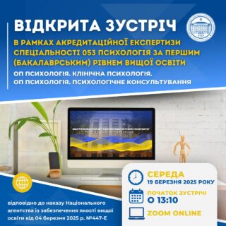 👩🏼💻🇺🇦Запрошуємо всіх бажаючих долучитися до відкритої зустрічі в рамках акредитаційної експертизи 19 березня 2025 року о 13:10