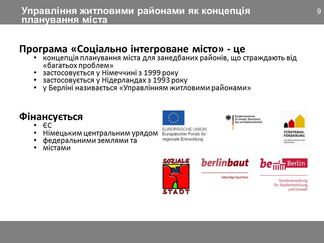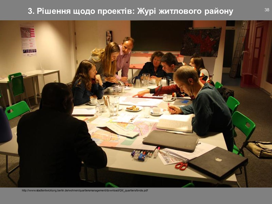 До початку засідання, ознайомтесь в прикріпленому файлі з презентаційним матеріалом «Приклад партисипації та інтеграційного міського розвитку. Управління житловими районами міста», Вам це допоможе більш творчо й креативно попрацювати в команді.