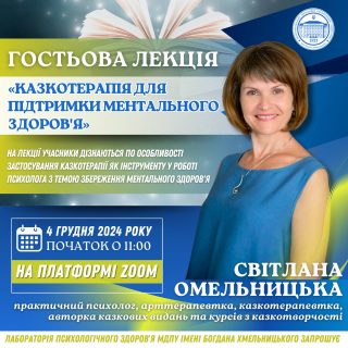 📚🎓На лекції учасники дізнаються по особливості застосування казкотерапії як інструменту у роботі психолога з темою збереження ментального здоров’я.