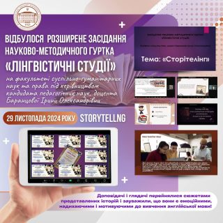 🎞️📚 29 листопада 2024 року на факультеті суспільно-гуманітарних наук та права відбулося розширене засідання науково-методичного гуртка «Лінгвістичні студії», який функціонує на факультеті під керівництвом кандидата педагогічних наук, доцента Баранцової Ірини Олександрівни, на тему: «Сторітелінг».