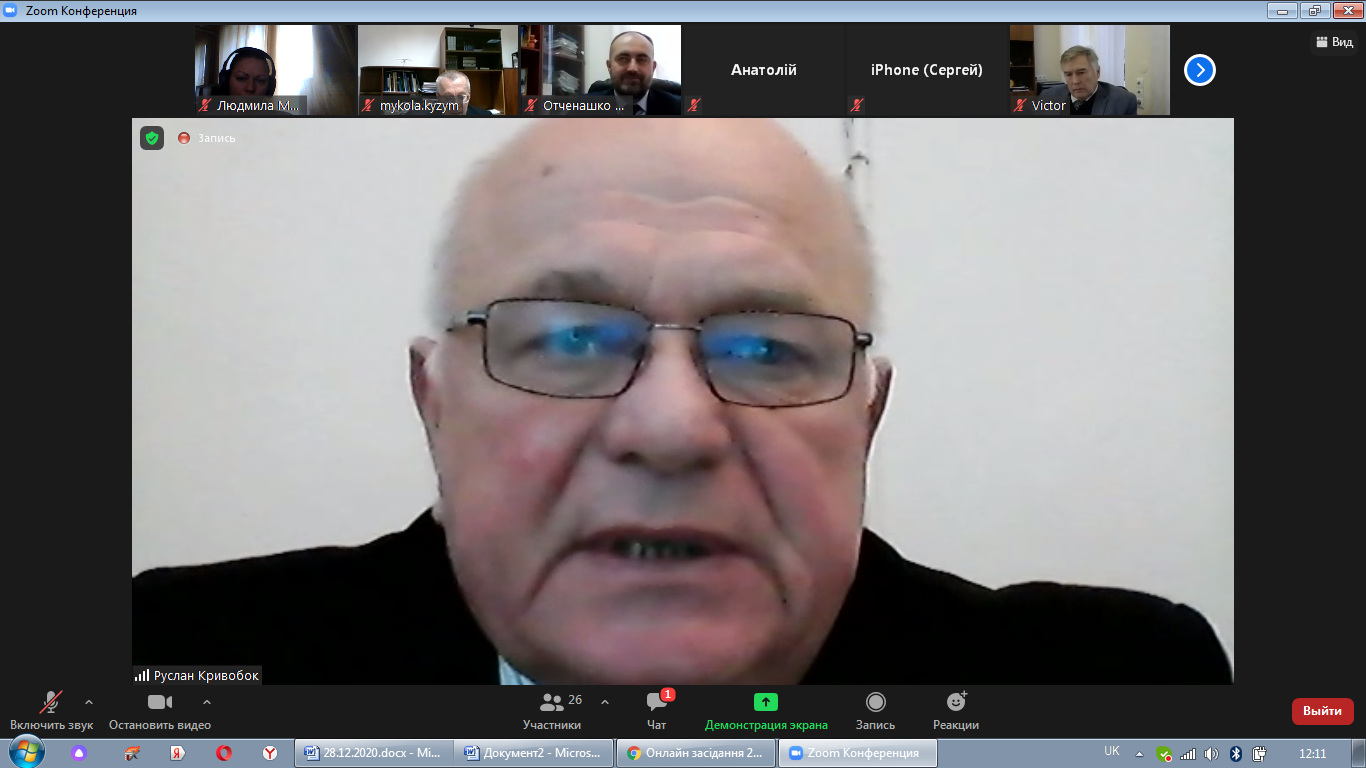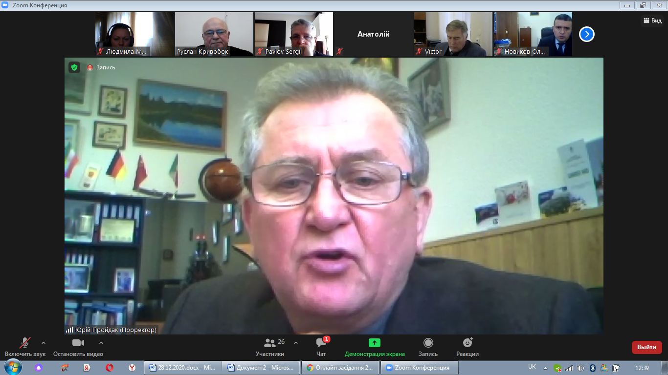 29.12.2020 відбулося засідання Президії Ради проректорів з наукової роботи закладів вищої освіти та директорів наукових установ МОН України.