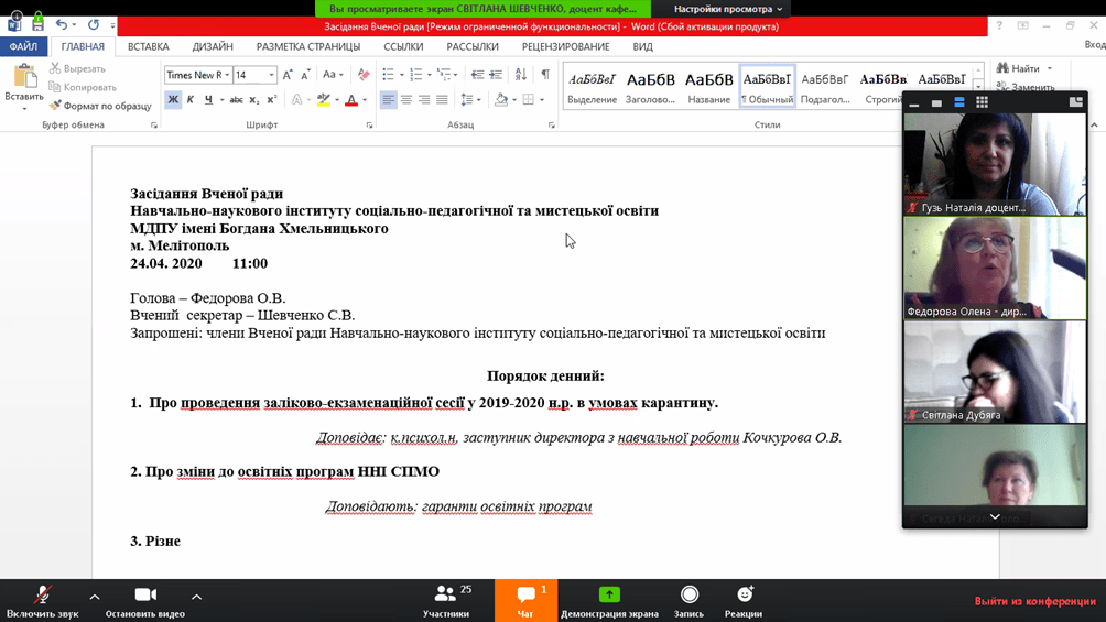 24 квітня 2020 р. відбулося чергове засідання Вченої ради Навчально-наукового інституту соціально-педагогічної та мистецької освіти.