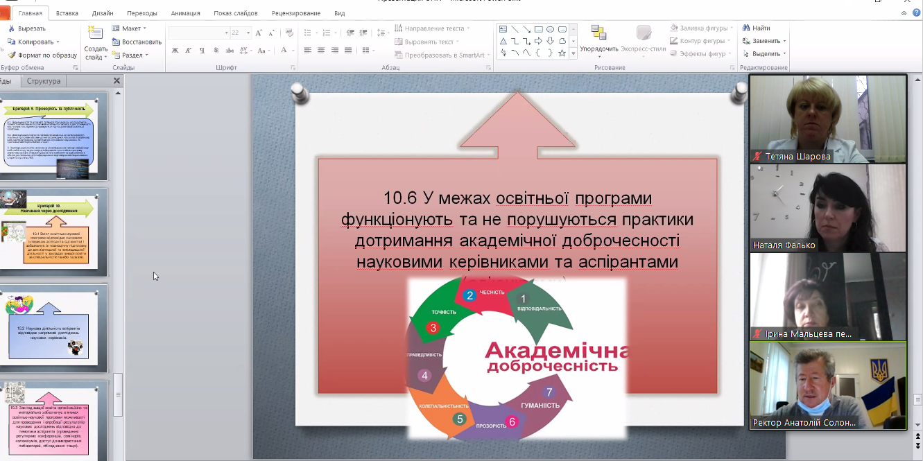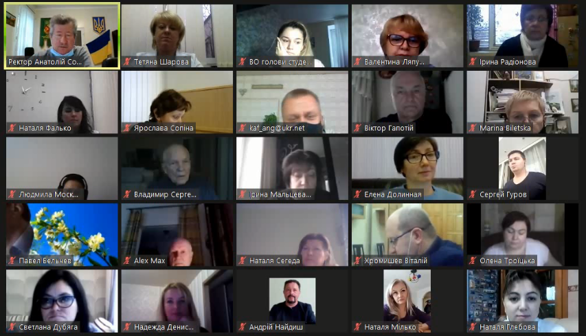 Попередньо усі члени Вченої ради отримали посилання на онлайн конференцію в режимі Zoom та мали можливість завчасно ознайомитись із порядком денним та проектом рішення. Голова вченої ради, ректор Університету професор Солоненко А.М. провів засідання Вченої ради злагоджено та конструктивно.