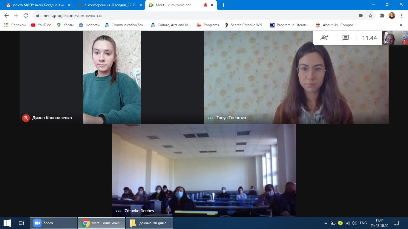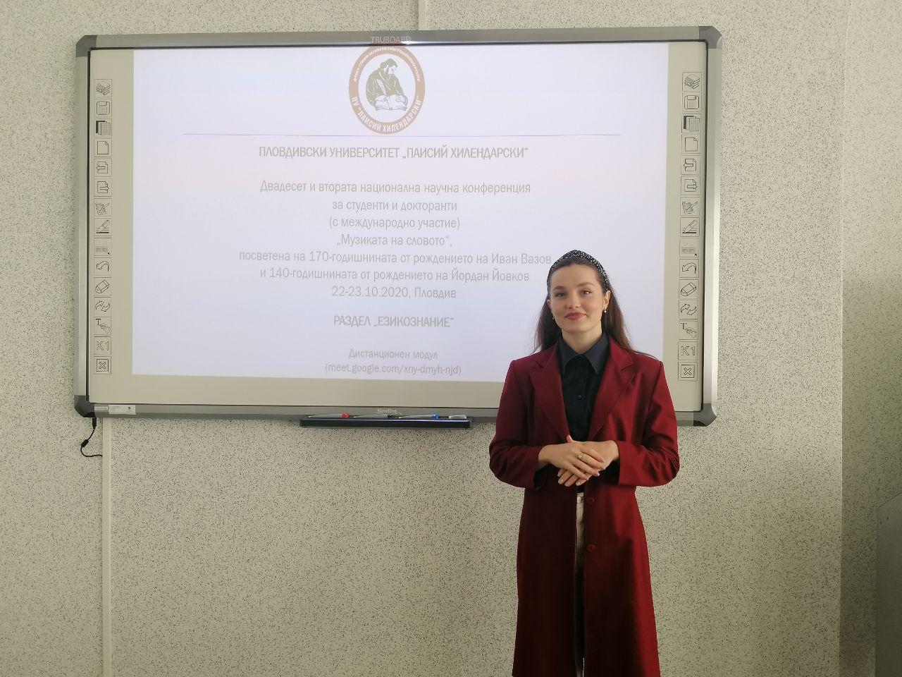 22-23 жовтня 2020 р. аспіранти Альона Рутковська, Максим Рутковський, магістрантка 2-го курсу Ольга Сироватко, магістрантка 1-го курсу Катерина Дуднік і студентка 2-го бакалаврату Діана Коноваленко взяли участь у 22-й Національній науковій конференції студентів і докторантів «Музика слова», яка проходила в Пловдивському університеті „Паисий Хилендарски“ (Республіка Болгарія).