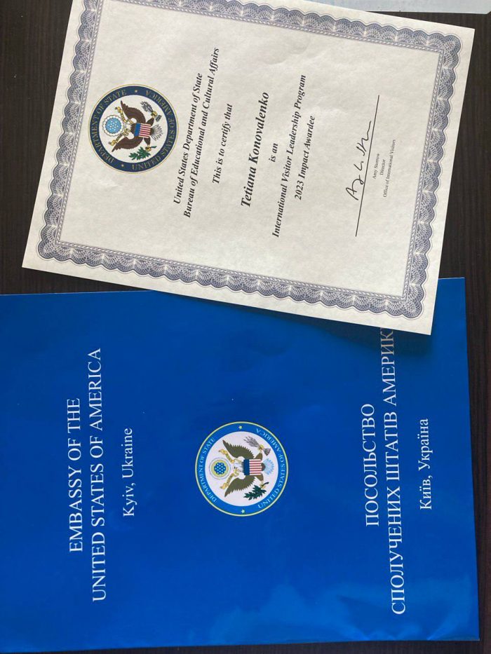 💐🎓Трьох випускниць, серед яких Тетяна Коноваленко, було нагороджено Дипломами International Visitor Leadership Program ImpactAwardee, оскільки вони після участі у програмі вибороли гранти на реалізацію індивідуальних проєктів.