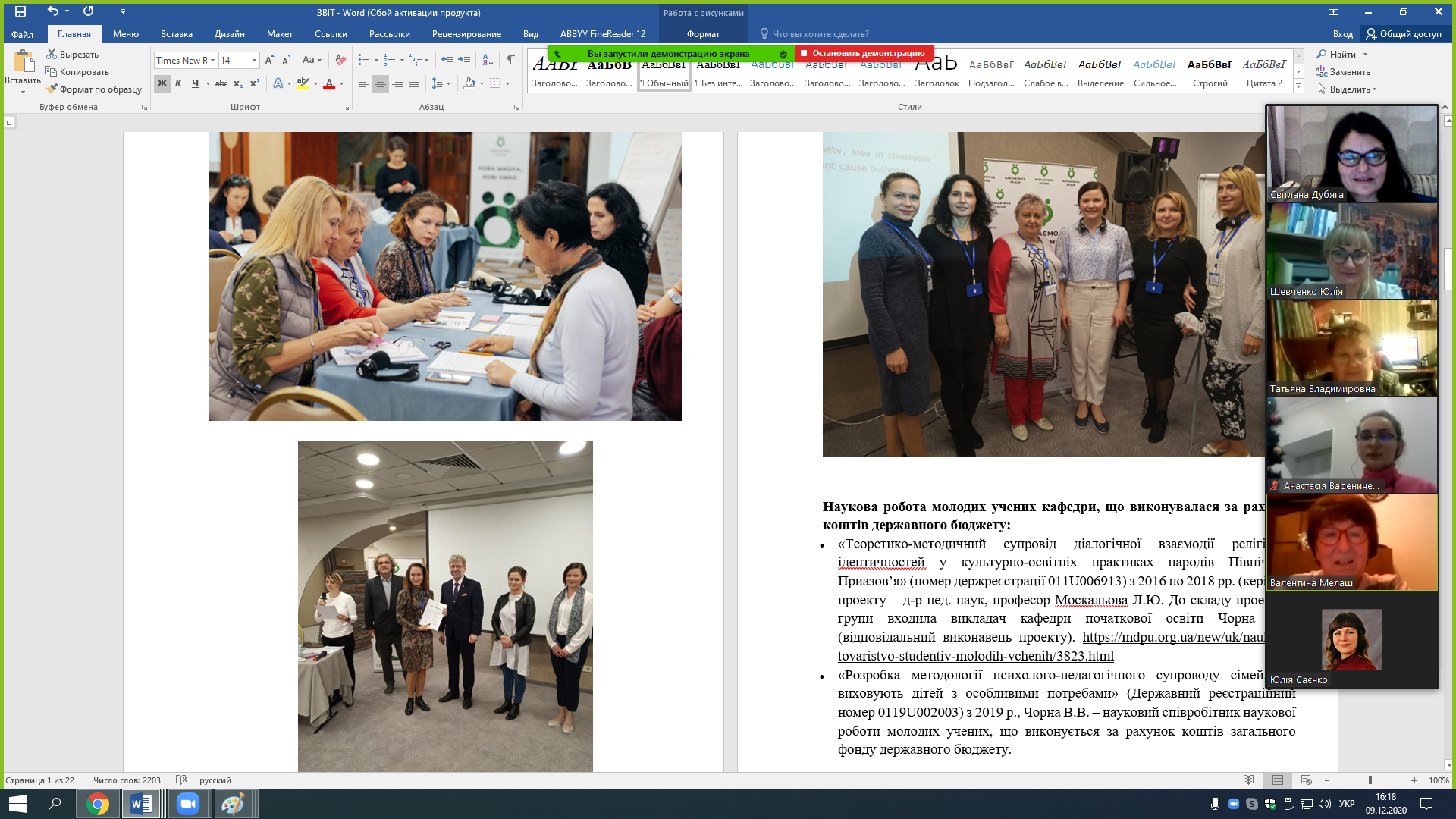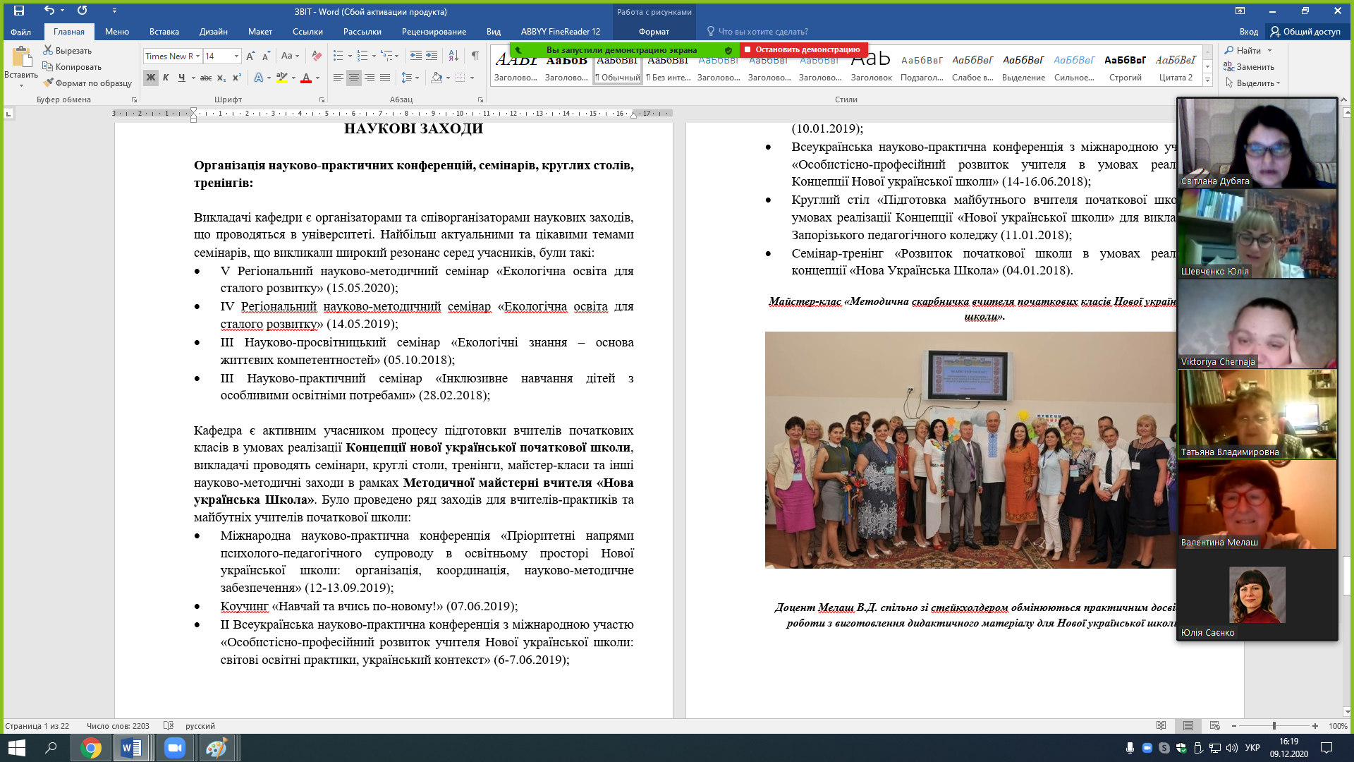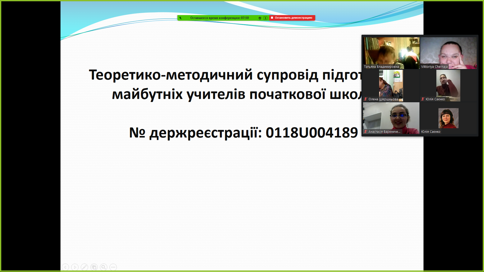 09 грудня 2020 року кафедрою початкової освіти проведено звітну конференцію за темою науково-дослідної роботи «Теоретико-методичний супровід підготовки майбутніх учителів початкової школи» (2018 – 2020 рр.).
