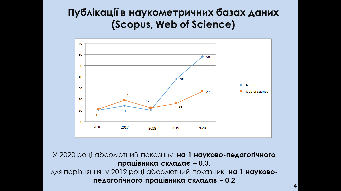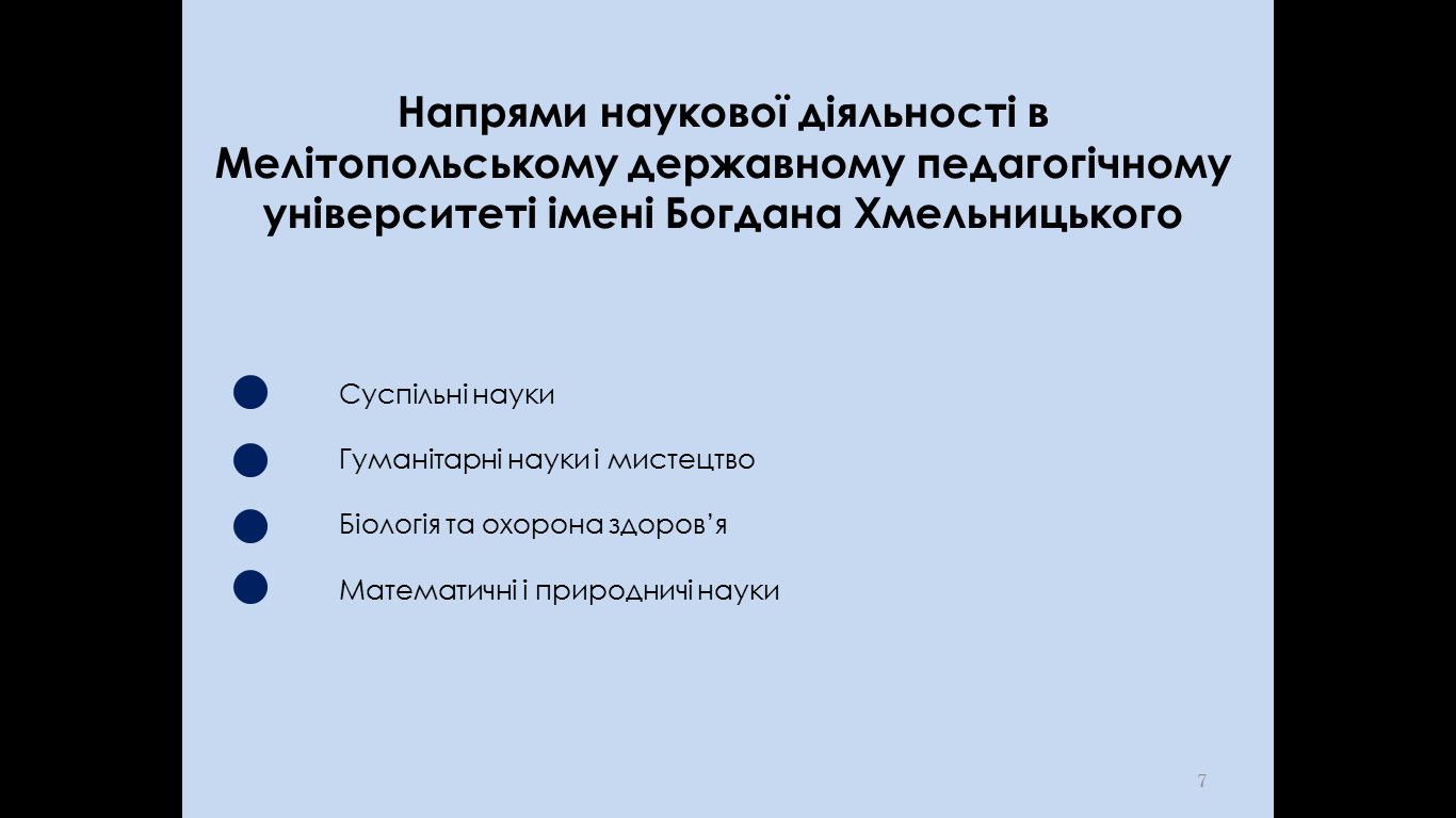 Звіт університету у МОН України представила проректор з наукової роботи, професор Людмила Москальова. Вона висвітлила усі позиції, що стосуються здійснення наукової, науково-технічної діяльності в університеті. Людмила Москальова розкрила теми наукових досліджень відповідно кожного напряму наукової діяльності, а також питання, що пов’язані з комерціалізацією наукових послуг. Окреме місце у доповіді було присвячено публіцистичній активності науковців, місцях університету у різних рейтингах, підготовці наукових і науково-педагогічних кадрів тощо.