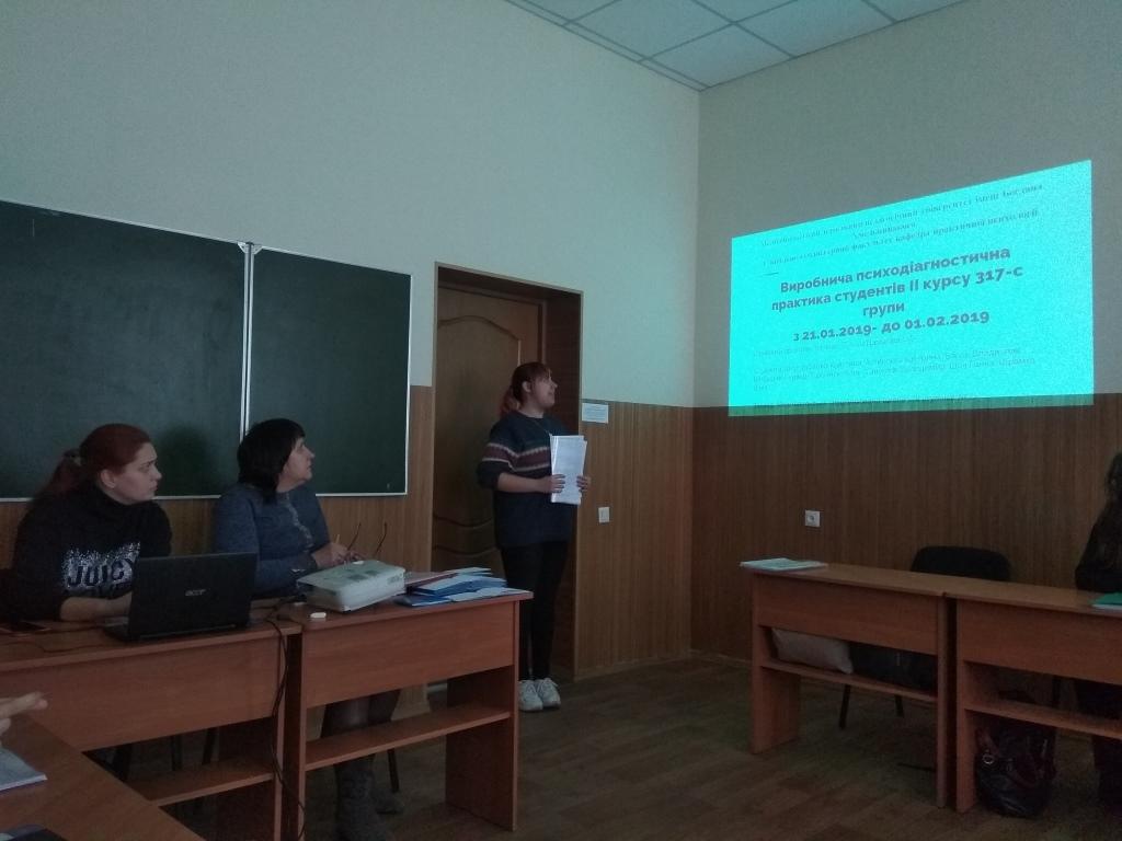 Презентуючи підсумки роботи, здобувачі вищої освіти повідомили про виконані завдання, набуті знання, вміння, досвід взаємодії з психологом та педагогічним колективом бази практики, спілкування з учнями різних вікових груп. Під час проходження практики студенти ознайомились з особливостями організації і проведення науково-психологічного спостереження та психологічного опитування, з особливостями і технологією використання на практиці найбільш розповсюджених психологічних тестів (особистісних інтелектуальних, тестів здібностей та досягнень), методик соціометрії, референтометрії та психологічного експерименту ‒ процедурами їх використання, алгоритмами обробки, способами змістовної інтерпретації.